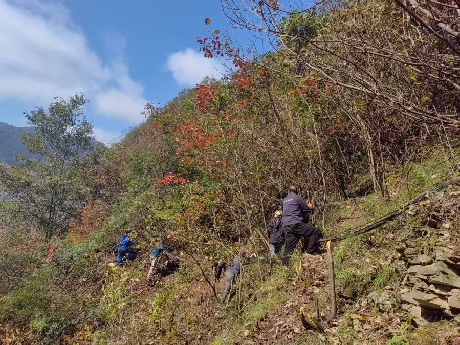 險情即命令,行動顯擔當。面對復雜地形與植被纏繞的“攔路虎”,金米黨支部想方設法、果斷出擊,由黨員帶頭,組織全體在崗人員趕赴現場開展義務整治。他們自帶砍柴刀、繩索等工具,對嚴重影響施工安全的荊棘雜草進行全面清理。